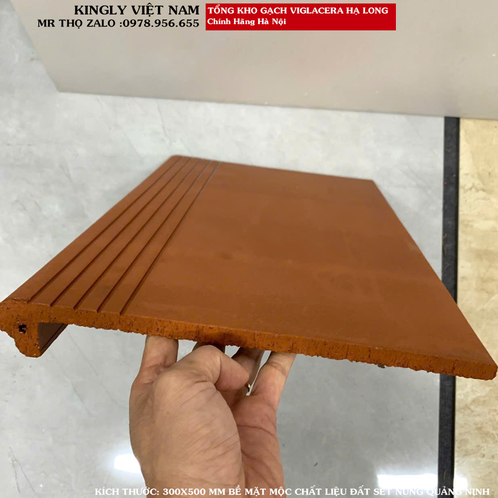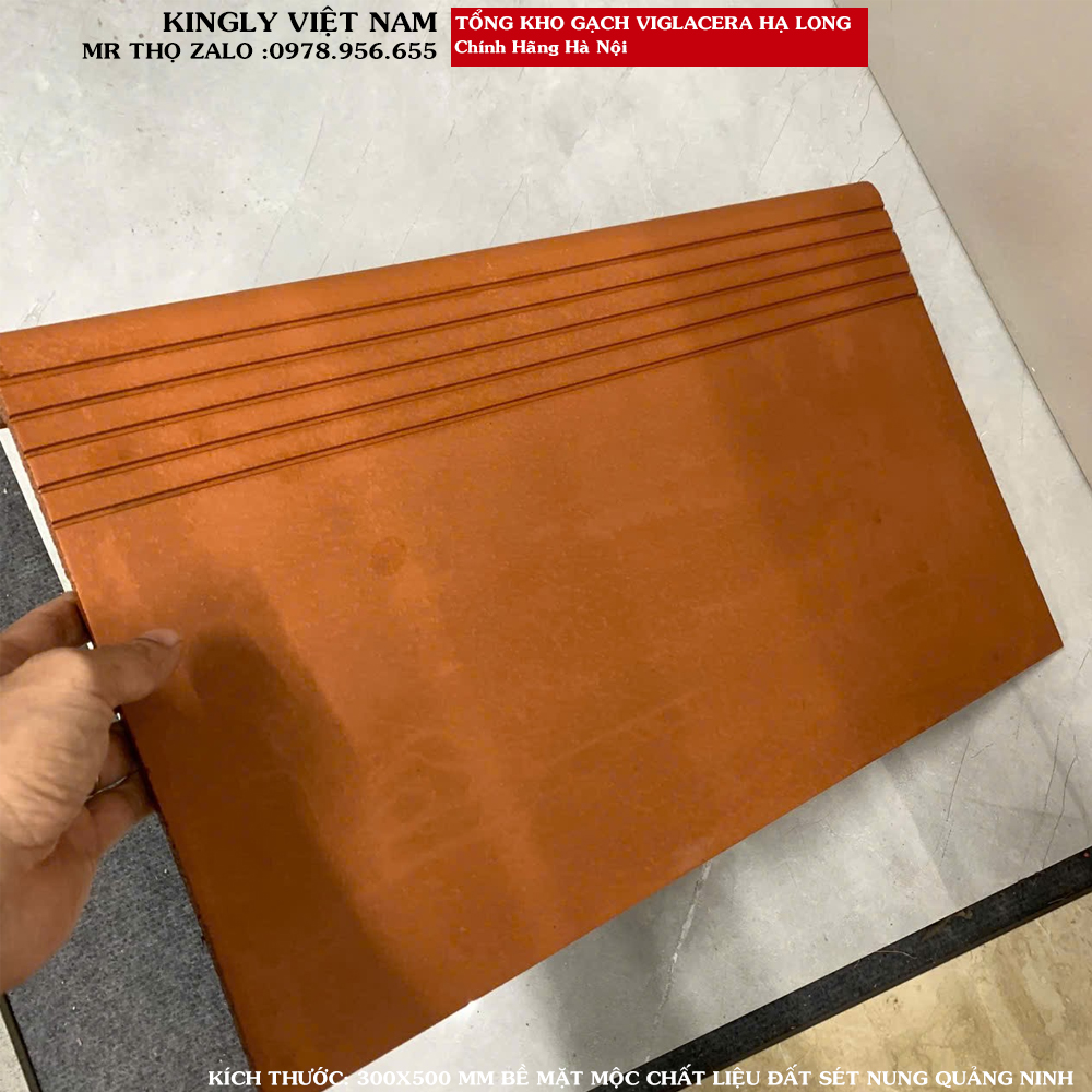 Tại KINGLY Việt Nam – Tổng kho gạch đỏ Hạ Long tại Hà Nội, chúng tôi tự hào mang đến gạch bậc thềm Viglacera 30x50 đỏ nhạt bề mặt mộc A1, dòng sản phẩm được sản xuất trực tiếp từ Công ty Cổ phần Viglacera Hạ Long, thương hiệu gạch đất nung uy tín hàng đầu Việt Nam.